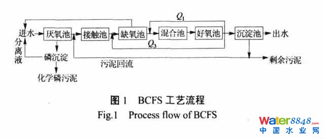 BCFS 將生物、化學(xué)除磷工藝合并,是在線磷分離與離線磷沉淀的生物與化學(xué)除磷結(jié)合方式,充分利用反硝化聚磷菌的反硝化除磷和脫氮雙重作用,來實(shí)現(xiàn)磷的完全去除和氮的最佳去除過程。由于充分利用 BCFS 工藝中的污泥齡易滿足硝化細(xì)菌增長所需的生長條件,污泥產(chǎn)量較低。荷蘭 BDG與 WGS 工程咨詢公司針對(duì) BCFS 技術(shù)合作開發(fā)設(shè)計(jì)出同心圓反應(yīng)池,實(shí)現(xiàn)了計(jì)算機(jī)自動(dòng)控制。但是該工藝回流系統(tǒng)較復(fù)雜且總回流比高,同時(shí)在流程上比較復(fù)雜,污水處理廠通常采用同心圓構(gòu)型,運(yùn)行管理相對(duì)復(fù)雜,運(yùn)行成本相對(duì)較高。
