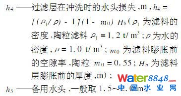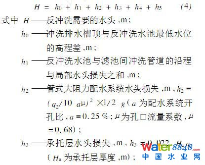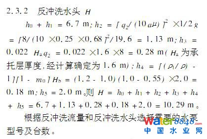 反沖洗水使用曝氣生物濾池正常工作時(shí)出水,由水泵加壓供給,反沖洗水頭由下式計(jì)算: