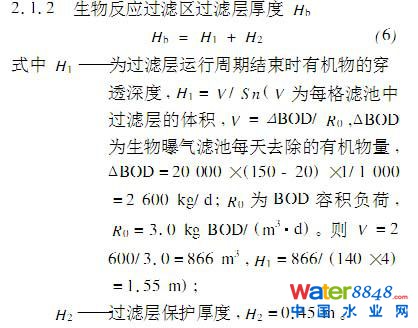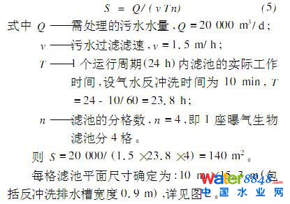 2.1.1生物反應(yīng)過濾區(qū)過濾面積S