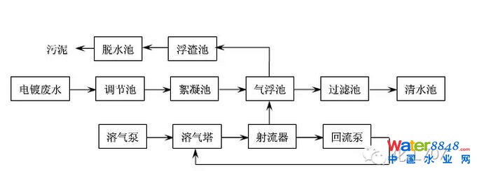 通過添加絮凝劑使得重金屬廢水中的小膠體顆粒穩(wěn)定性變差,聚集形成大顆粒膠體物質,最終通過重力作用沉淀下來。為增大膠體顆粒的尺寸,采用浮選的辦法,用于將不穩(wěn)定的膠體粒子變?yōu)楣滔嘈跄。這一浮選過程一般包括兩個重要的步驟,一是調(diào)節(jié)pH值,二是加入含鐵或鋁鹽的絮凝劑,以克服離子間靜電排斥導致的穩(wěn)定作用。