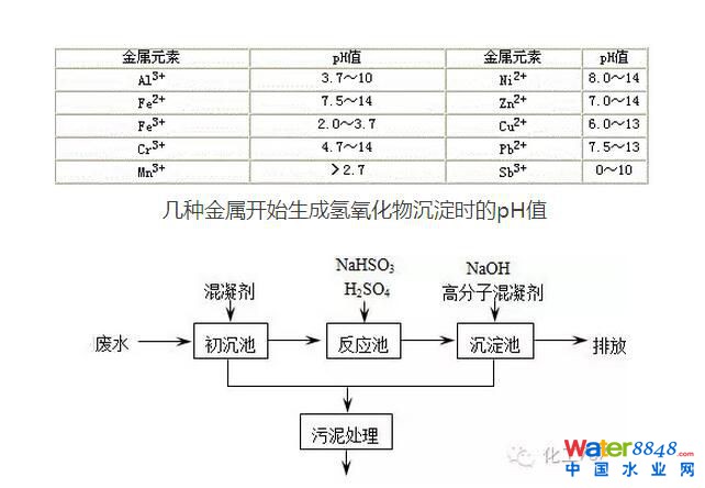 這種方法的原理是,用還原劑將重金屬廢水中的重金屬離子還原為金屬單質或者價態(tài)較低的金屬離子,先將金屬過濾收集,然后再往處理液中加入石灰乳,使得還原態(tài)的重金屬離子以氫氧化物的形式沉淀收集。銅和汞等的回收可以利用這種方法,該法也常用于含鉻廢水的處理。較常使用的還原劑有硫酸亞鐵、亞硫酸氫鈉、鐵粉等。