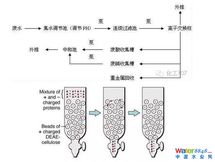 用離子交換樹脂把廢水中的重金屬離子交換出來,從而除去重金屬離子。不過,離子交換樹脂價格昂貴,其再生費用也比較高,所以,在廢水處理中使用很少。但對于少量有回收價值的有毒金屬來說是個不錯的方法。