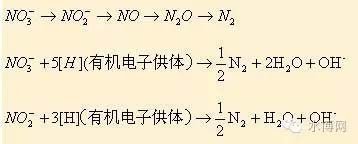 反硝化作用是指在厭氧或缺氧(DO<0.3-0.5mg/L)條件下,NOx―-N及其它氮氧化物被用作電子受體被還原為氮氣或氮的其它氣態(tài)氧化物的生物學反應,這個過程由反硝化菌完成。反應歷程為: