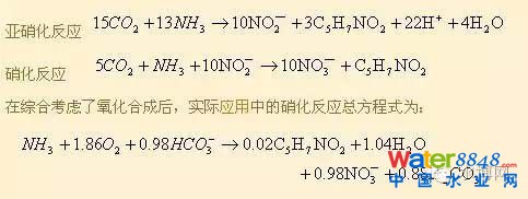 硝化作用是指將NH3-N氧化為NOx--N的生物化學反應,這個過程由亞硝酸菌和硝酸菌共同完成,包括亞硝化反應和硝化反應兩個步驟。該反應歷程為: