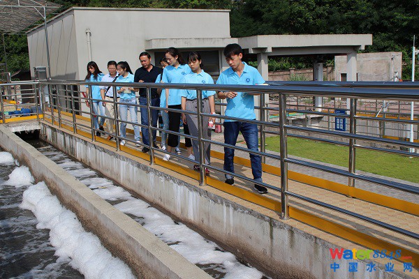 當(dāng)天,同學(xué)們還參觀了污水處理的工藝流程,污水經(jīng)過粗格柵、提升泵房、細(xì)格柵、沉砂池、預(yù)缺氧選擇池、A2O生物池、二沉池、接觸消毒池、出水井,以及鼓風(fēng)機(jī)房、污泥脫水機(jī)房等附屬設(shè)施處理后,出廠尾水可達(dá)《城鎮(zhèn)污水處理廠污染物排放標(biāo)準(zhǔn)》(GB18918-2002)一級B標(biāo)準(zhǔn),將直接排入澎溪河。實(shí)踐團(tuán)成員在監(jiān)控室看到,公司有專業(yè)人員對污水處理過程進(jìn)行全方位監(jiān)測,實(shí)時(shí)顯示各階段污水處理的相關(guān)運(yùn)行參數(shù)和水質(zhì)情況。