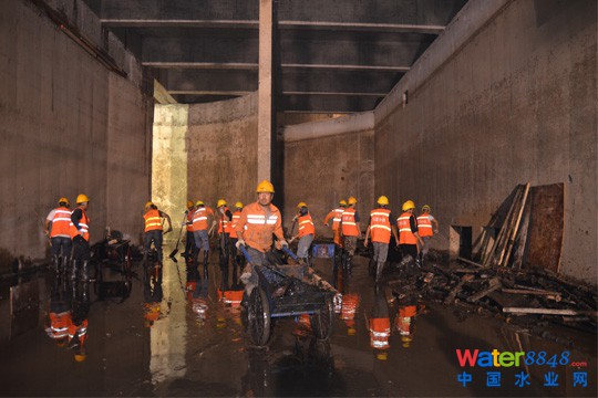 (圖說(shuō):通宵達(dá)旦清理生物池池底淤泥)
