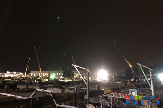 (圖說(shuō):凌晨生化池蓋板澆筑混凝土)