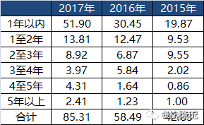 回款究竟有多慢呢?通過這個(gè)表可以看到:2015年“1年以內(nèi)”的應(yīng)收賬款是19.87億元,如果當(dāng)年沒還上,就會(huì)在2016年記為“1至2年”的應(yīng)收賬款,也就是12.47億元。如果還是沒還上,就會(huì)在2017年記為“2至3年”的應(yīng)收賬款,也就是8.92億元。