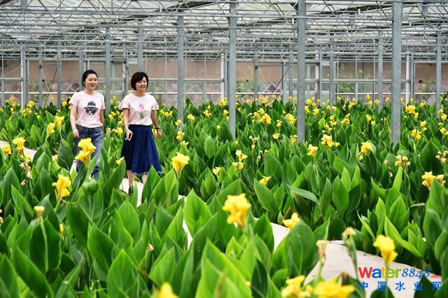 浙江省臨安污水處理一廠1.8萬平方米的溫室里種植了水生美人蕉、再力花等多種植物,以吸收氮、磷等營養(yǎng)物質(zhì),轉(zhuǎn)化合成植物體。攝影/章軻
