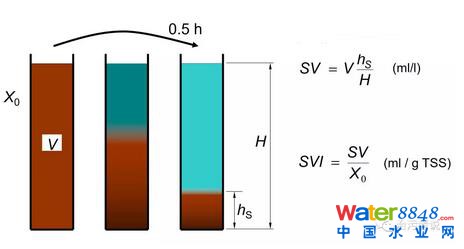活性污泥的系統(tǒng)是一個由生物池和二次沉淀池共同組成的系統(tǒng)(MBR工藝通過膜分離技術替代了沉淀池的泥水分離作用),二次沉淀池良好的泥水分離是活性污泥法運行好壞的關鍵。活性污泥通過生物池的曝氣處理后,流入到二沉池內,在二沉池內靜沉沉淀,SV30基本可以代表這個靜沉沉淀的過程。二沉池的沉淀時間往往在2個小時左右,SV30用半小時的時間來代替2小時的沉淀,是因為SV30是在一個靜止的環(huán)境中進行的檢測,而二沉池的2小時沉淀是一個連續(xù)進水連續(xù)出水的環(huán)境,2小時的連續(xù)進出水的沉淀效果和靜止狀態(tài)下的30分鐘的效果接近。因此SV30是能夠反應出二沉池內的泥位高低的一個指標。