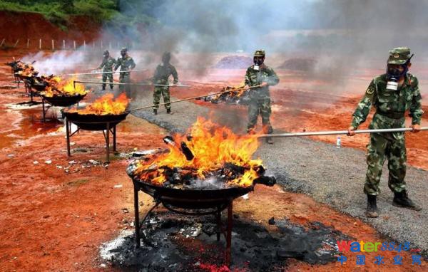 中國警方銷毀繳獲的毒品。 新華社 圖