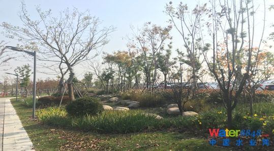 通過建設(shè)生態(tài)護(hù)岸、路面透水鋪裝、建設(shè)雨水花園及雨水分散-滲透系統(tǒng),實(shí)現(xiàn)了存儲(chǔ)、滲透、凈化的海綿功能,營造出兩岸自然水生態(tài)美景。綠地內(nèi)海綿功能實(shí)現(xiàn)了對(duì)徑流雨水的有效消納。