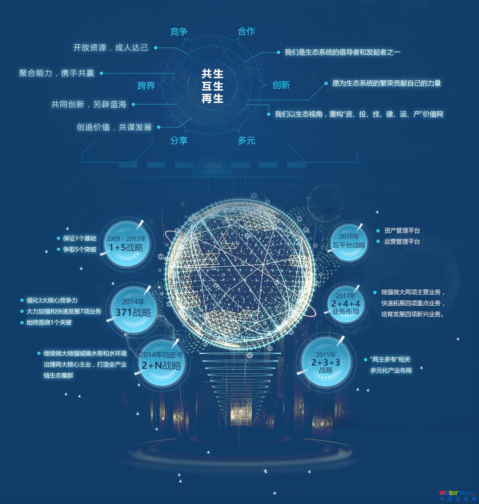 為更好地應對環(huán)保產(chǎn)業(yè)的新形勢和新挑戰(zhàn),北控水務確立了指引公司未來發(fā)展的“生態(tài)戰(zhàn)略”。對內(nèi)向生態(tài)型企業(yè)轉型,對外積極倡導構建環(huán)保水務生態(tài)系統(tǒng),采用靈活多樣的合作機制,打造產(chǎn)業(yè)鏈生態(tài)集群,與業(yè)內(nèi)各領先企業(yè)共同發(fā)展。