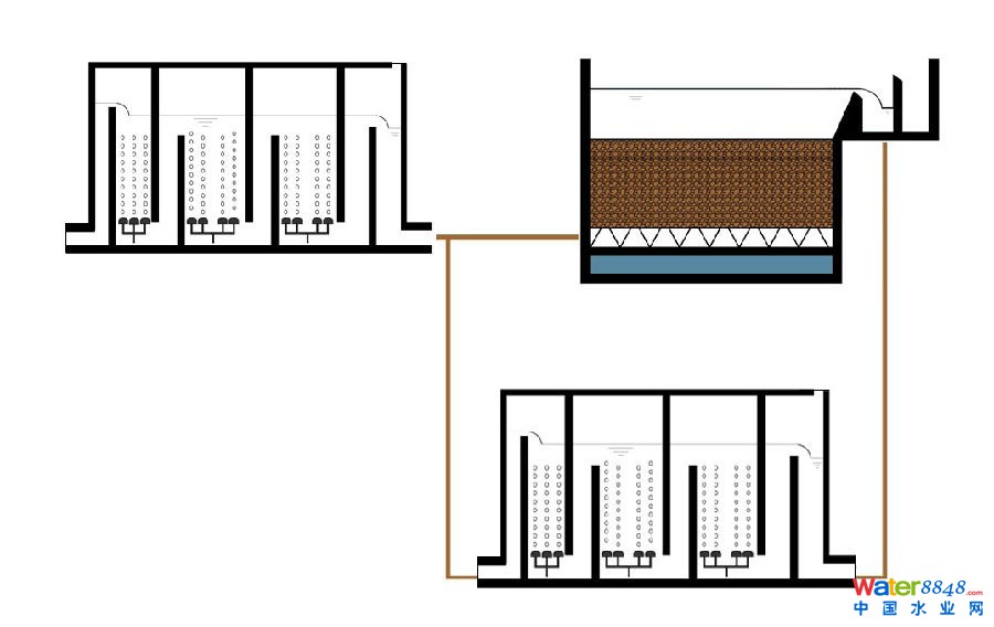 在前端生化尚不徹底或難降解COD較高的情況下,需要執(zhí)行更高的排放標(biāo)準(zhǔn),例如COD<30mg/l時(shí),可以采用前后臭氧組合投加,臭氧氧化去除一部分COD,同時(shí)為后續(xù)Biofix生物濾池單元產(chǎn)生BOD,采用生化的方法再去除一部分COD。采用前后臭氧以及三級(jí)投加方式,利用臭氧氧化反應(yīng)的最佳點(diǎn)從而可以使得臭氧投加最小,降低運(yùn)行成本