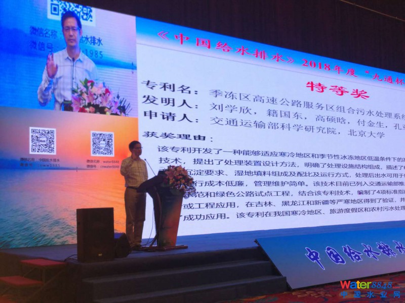 本次活動(dòng)由《中國(guó)給水排水》雜志社和珠海九通水務(wù)股份有限公司主辦,旨在鼓勵(lì)水行業(yè)技術(shù)的自主創(chuàng)新!“九通杯”活動(dòng)遵循了公平、公正、公開、科學(xué)、嚴(yán)謹(jǐn)?shù)脑瓌t,技術(shù)創(chuàng)新評(píng)審以創(chuàng)新性、實(shí)用性為主要依據(jù)。本次“九通杯”評(píng)選的一大亮點(diǎn)是更鼓勵(lì)有實(shí)際應(yīng)用案例和效果的專利參選;顒(dòng)采用多方推薦、網(wǎng)絡(luò)投票、評(píng)委會(huì)評(píng)審、編委會(huì)審定、網(wǎng)站公示的評(píng)選流程,最終評(píng)選出25名創(chuàng)新獎(jiǎng)獲得者,其中特等獎(jiǎng)1名、一等獎(jiǎng)3名、二等獎(jiǎng)6名、提名獎(jiǎng)15名。一等獎(jiǎng)獲得者有:陳小燕(中國(guó)市政工程華北設(shè)計(jì)研究總院有限公司)、侯鋒(清華大學(xué)環(huán)境學(xué)院)、肖先念(廣州市凈水有限公司);二等獎(jiǎng)獲得者有:汪曉軍(華南理工大學(xué))、戈學(xué)珍(青島巨川環(huán)?萍加邢薰荆、李偉(北京恩菲環(huán)保股份有限公司)、杜強(qiáng)強(qiáng)(北京市市政工程設(shè)計(jì)研究總院有限公司)、李志華(光大環(huán)保能源蘇州有限公司)、夏紹鳳(合肥市市政設(shè)計(jì)研究總院有限公司)!吨袊(guó)給水排水雜志》執(zhí)行主編丁堂堂參與了頒獎(jiǎng)。下一屆“九通杯”將以專利評(píng)選為主,歡迎行業(yè)人士踴躍參與!(配圖:頒獎(jiǎng))