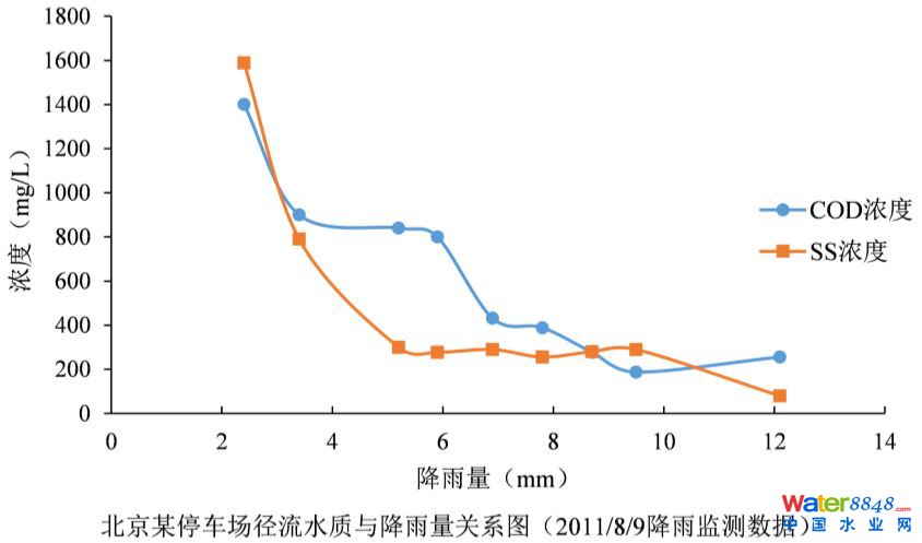 北京建筑大學(xué)通過(guò)對(duì)北京和上海的調(diào)研,累積出一個(gè)關(guān)于北京某停車(chē)場(chǎng)的徑流水質(zhì)與降水量的關(guān)系圖。所用的水質(zhì)指標(biāo)是SS和COD。從圖中可以看出,隨著降雨量的增加,SS和COD的濃度都表現(xiàn)出明顯的下降趨勢(shì),這說(shuō)明降雨強(qiáng)度越大,SS和COD的去除率越高。這為海綿設(shè)施的建設(shè)提供了一個(gè)基本的指標(biāo)參數(shù)。不同的區(qū)域?qū)S污染徑流的控制率不同,美國(guó)西部地區(qū)對(duì)SS徑流的控制率為60%,而東部地區(qū)對(duì)SS的控制力度相對(duì)較大,為90%,這同時(shí)也說(shuō)明了美國(guó)東部地區(qū)的降水徑流的控制率高于90%。據(jù)統(tǒng)計(jì),美國(guó)東部地區(qū)最高的降水徑流是控制到一英寸多,即31mm。我國(guó)對(duì)徑流污染的控制率也是60%,這個(gè)值要比量的控制率(降雨徑流控制率)低的多。因此將來(lái)我們?cè)谶M(jìn)行控制率設(shè)定時(shí),要同時(shí)參考這兩個(gè)值,然后取其最大值。