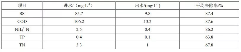 表2 無沖擊負(fù)荷時人工濕地進、出水水質(zhì)