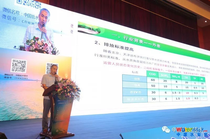 我今天給大家匯報的題目是高標準排放下污水廠運營的痛點與出路。主要從四個方面介紹。首先從行業(yè)背景和技術(shù)背景方面談一下提標改造的內(nèi)憂和外患。