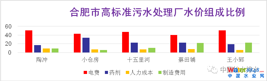 接下來給大家介紹一下,大家可能都比較關心的,提到這么高的標準,項目投資情況和運行費用情況。拿王小郢來說,竣工決算投資約2.5億,噸水投資大約800萬,水價組成分析中,大家可以看到,紅色部分是電費,第二部分是藥劑費,電費占成本的60%左右。