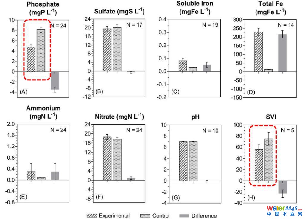 圖2加鐵后SBR出水各物質(zhì)含量和污泥的特征--來(lái)自原文