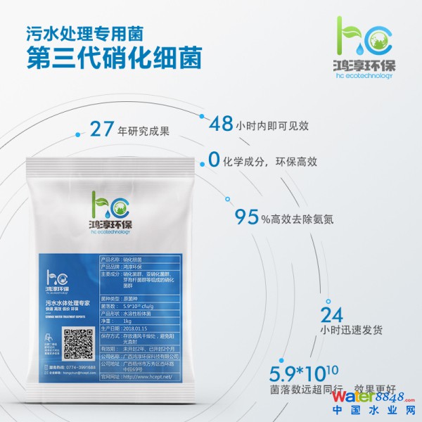 好氧菌必須存在氧氣需求量較高的地方,所以大部分都存在開放式過濾槽的濾材內(nèi),氧氣含量若太低,硝化細(xì)菌菌種就會產(chǎn)生變化或死亡,所以若氧氣充足則會讓好氧菌表現(xiàn)出更好的效果。正是因為日常生活中隨處可見的這些自然界奇妙的微生物技術(shù),從而激發(fā)科學(xué)家的研究理念,通過提取大自然中的這些硝化細(xì)菌進行馴服,針對好氧菌的養(yǎng)水凈化特性,研發(fā)專用于污水處理的硝化細(xì)菌,因此利用微生物技術(shù)將硝化細(xì)菌應(yīng)用于污水處理領(lǐng)域。這些用于污水處理的硝化細(xì)菌只是屬于污水處理菌種的其中一種,此污水處理菌往往能做到對水中氨氮、COD、BOD等污染物質(zhì)的高去除率,增強污水處理系統(tǒng)污泥絮狀結(jié)構(gòu)的穩(wěn)定,減少污泥的產(chǎn)生杜絕二次污染。而根據(jù)不同的反應(yīng)池功能,需相應(yīng)投放不同功能的污水處理菌種。