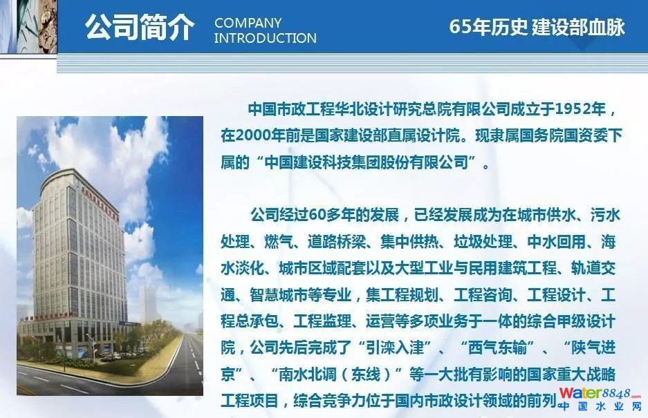 中國市政工程華北設計研究總院有限公司(簡稱華北院)隸屬于國務院國有資產(chǎn)監(jiān)督管理委員會管理的中國建設科技集團股份有限公司,2008年在同行業(yè)中率先取得了“工程設計綜合資質(zhì)甲級”證書。業(yè)務涵蓋設計、科研、咨詢、監(jiān)理、產(chǎn)品制造、項目管理、工程總承包等,是具備城軌交通、市政、公路、建筑等工程領域雄厚實力的綜合型、國際化企業(yè)。