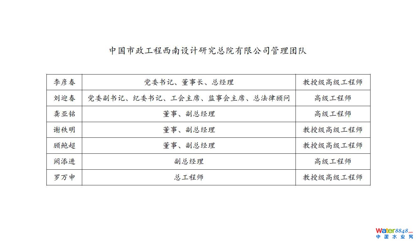 中國(guó)市政工程西南設(shè)計(jì)研究總院有限公司,作為知識(shí)密集型高新技術(shù)企業(yè),歷經(jīng)幾代人不懈努力,已形成了專(zhuān)業(yè)配套齊全,知識(shí)結(jié)構(gòu)合理的設(shè)計(jì)科研隊(duì)伍。成立60余年來(lái),為社會(huì)主義建設(shè)事業(yè)和環(huán)境保護(hù)做出了顯著貢獻(xiàn),取得了良好的經(jīng)濟(jì)效益和社會(huì)效益。企業(yè)圍繞“人才立院、技術(shù)強(qiáng)院、質(zhì)量興院、管理富院、制度治院”總方針,堅(jiān)持“立足西南、面向全國(guó)、開(kāi)拓沿海、走向國(guó)際”的經(jīng)營(yíng)方針,以“誠(chéng)信責(zé)任至上奉獻(xiàn)社會(huì),創(chuàng)造美好生活以人為本”為服務(wù)宗旨,以技術(shù)領(lǐng)先為核心競(jìng)爭(zhēng)力,以創(chuàng)新驅(qū)動(dòng)提高企業(yè)發(fā)展質(zhì)量,以工匠精神打造卓越品牌,中國(guó)市政工程西南設(shè)計(jì)研究總院有限公司贏得了社會(huì)的廣泛贊譽(yù)與肯定。