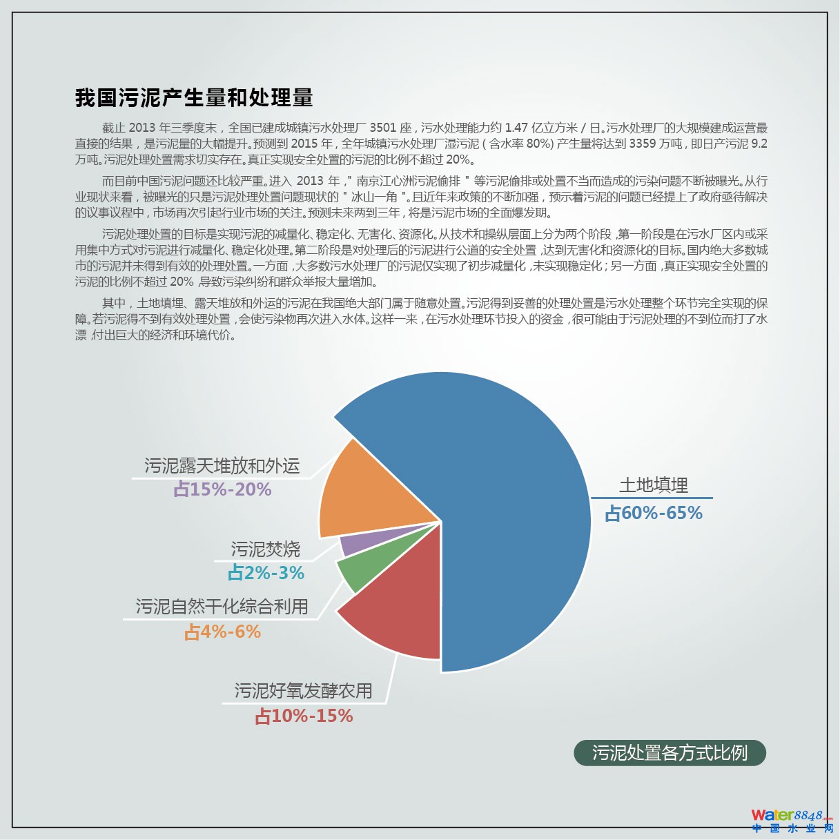住建部: 截至2017年12月底,全國設(shè)市城市、縣(以下簡稱城鎮(zhèn),不含其它建制鎮(zhèn))累計(jì)建成污水處理廠5027座,污水處理能力達(dá)1.88億立方米/日,年產(chǎn)生含水量80%的污泥5000多萬噸!八畻l”規(guī)