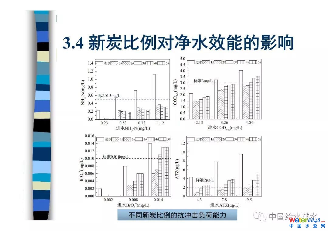 臭氧-生物活性炭深度處理工藝在保障飲用水安全、提升供水水質(zhì)等方面具有重要的作用。但隨著使用年限的延長,生物活性炭單元對水中部分污染物的去除效果出現(xiàn)了不同程度的下降,同時活性炭本身的理化性能,如碘值、強度、灰分等,也出現(xiàn)了不同程度的劣化。為更好地發(fā)揮生物活性炭工藝的凈化效果,在綜合臭氧氧化、活性炭吸附和生物降解協(xié)同作用的基礎上,結合水質(zhì)差異和現(xiàn)實需求,從凈水效能、活性炭理化性能、微生物種群演替入手,開展了生物活炭失效判別研究工作,并提出了相應的判別指標體系。并在此基礎上從微生物生長、污染物凈化、抗沖擊負荷能力和顆粒泄漏等方面開展了不同活性炭更換方案的對比研究,提出了技術可行、經(jīng)濟合理的更換方案。