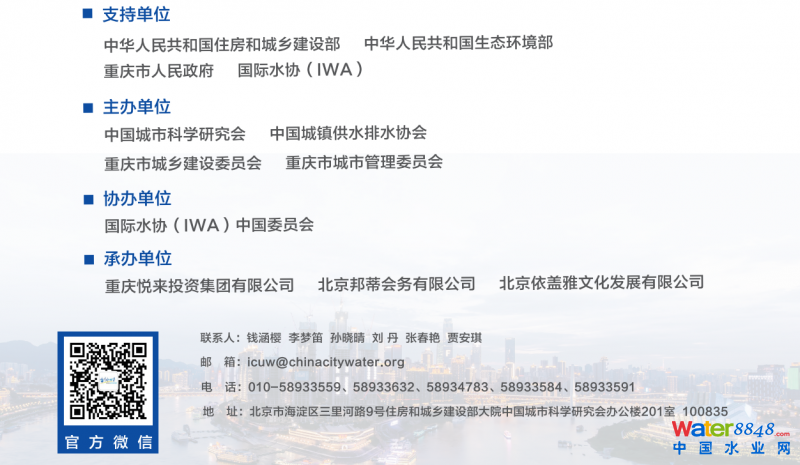 在此背景下,經(jīng)中國科協(xié)正式批準(zhǔn),在住房和城鄉(xiāng)建設(shè)部、生態(tài)環(huán)境部、重慶市人民政府的支持下,中國城市科學(xué)研究會、中國城鎮(zhèn)供水排水協(xié)會、重慶市城鄉(xiāng)建設(shè)委員會及重慶市城市管理委員會將在重慶市聯(lián)合舉辦"第十三屆中國城鎮(zhèn)水務(wù)發(fā)展國際研討會與新技術(shù)設(shè)備博覽會"。