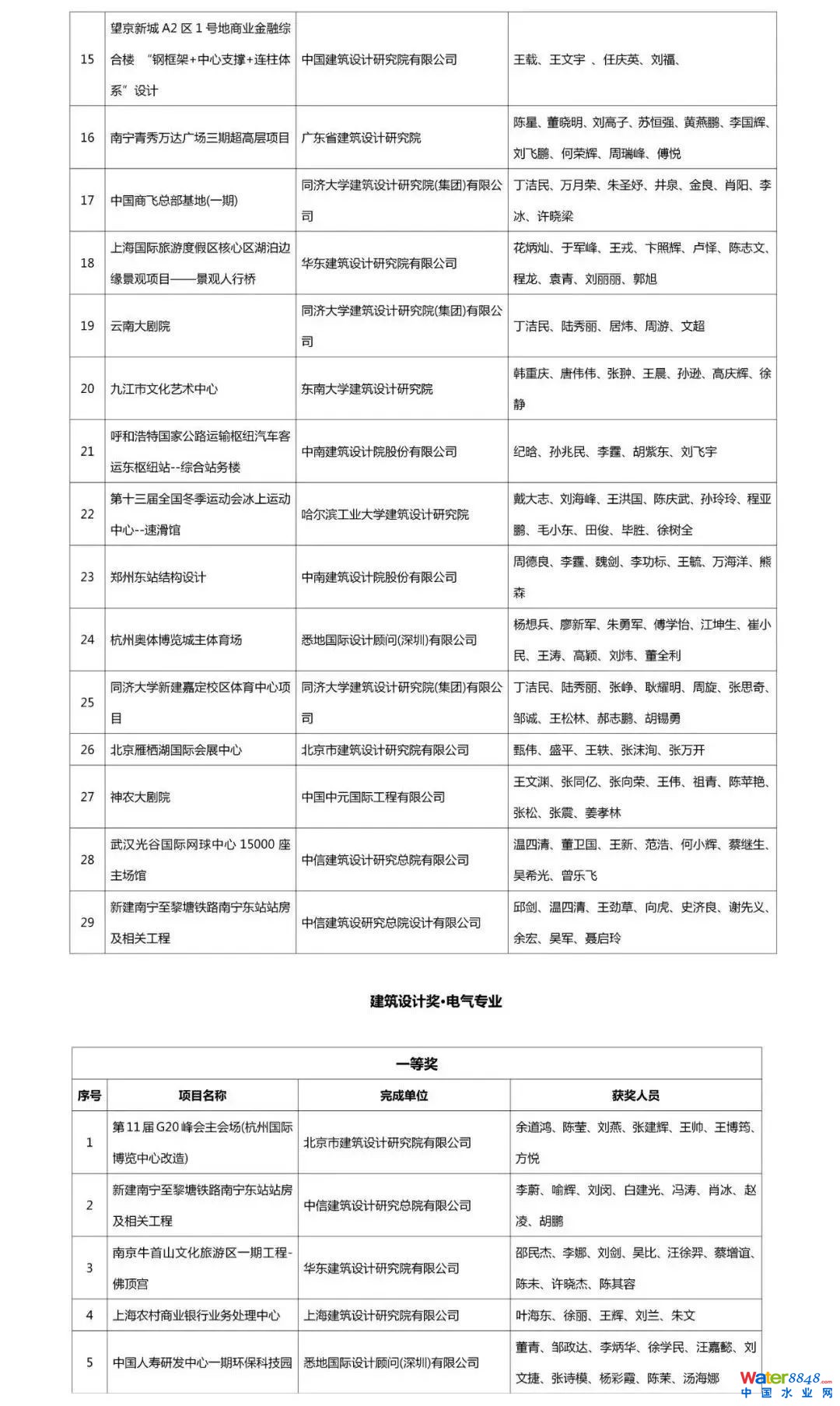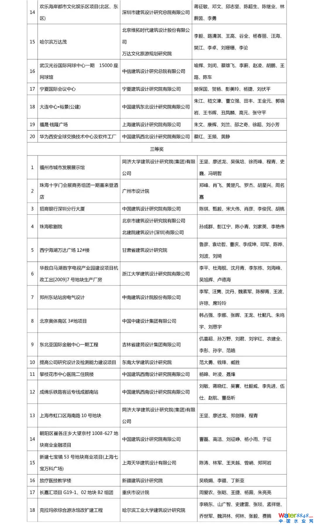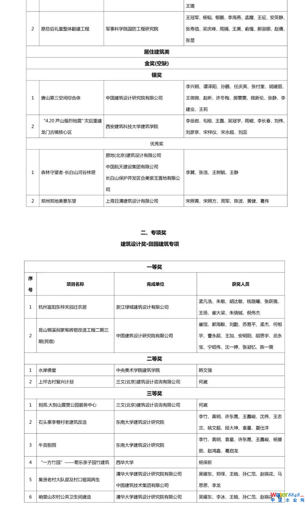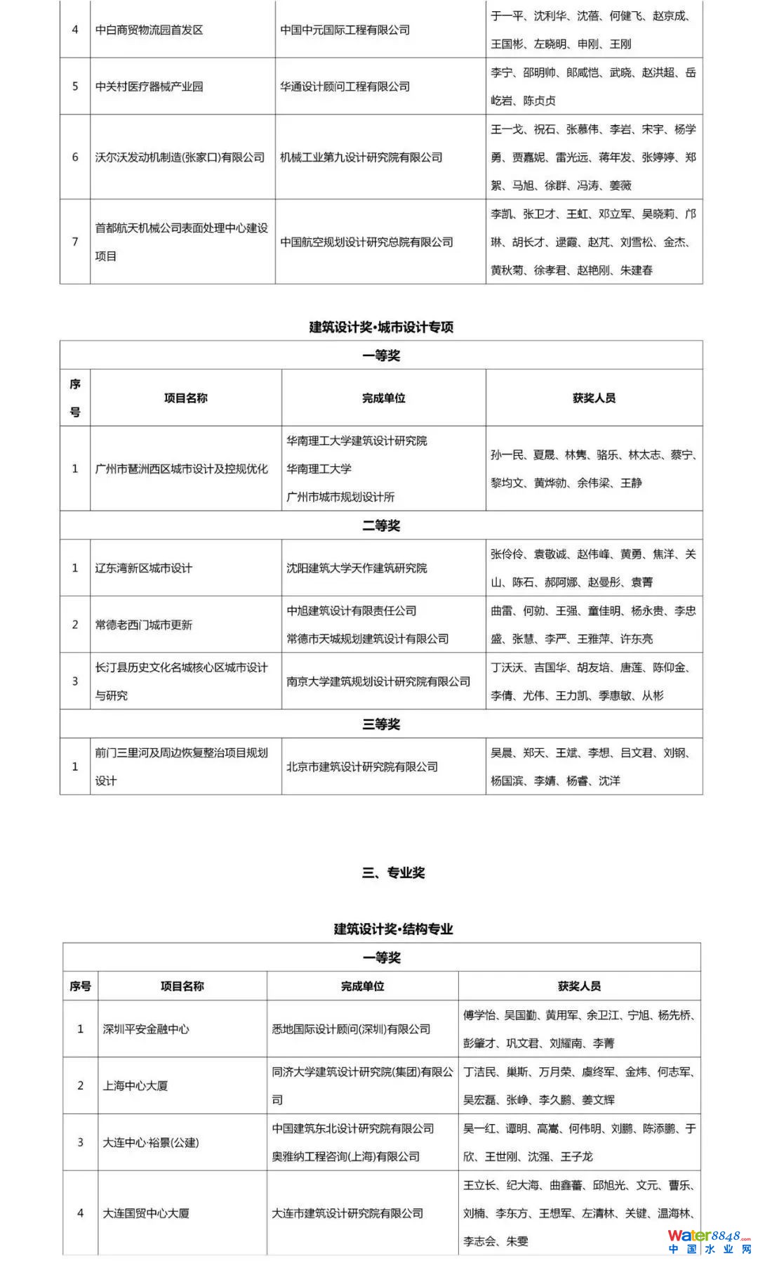 工程類:包括綜合獎、專項獎、專業(yè)獎。綜合獎名稱為“建筑設(shè)計獎·建筑創(chuàng)作獎”。專項獎名稱為“建筑設(shè)計獎·專項獎”,包括住宅建筑、工業(yè)建筑、田園建筑三個類型。專業(yè)獎名稱為“建筑設(shè)計獎·專業(yè)獎”,包括結(jié)構(gòu)、給水排水、暖通空調(diào)、電氣、室內(nèi)設(shè)計和園林景觀六個專業(yè)。