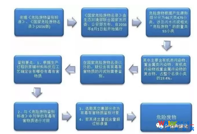 依據(jù)由環(huán)境保護部聯(lián)合國家發(fā)改委、公安部發(fā)布自2016年8月1日起開始施行的《國家危險廢物名錄》(公眾號內(nèi)回復(fù)”危廢名錄“下載)和《危險廢物鑒別標(biāo)準(zhǔn) 通則》,結(jié)合住建部、環(huán)保部、科技部于2009年2月28日聯(lián)合發(fā)布的《城鎮(zhèn)污水處理廠污泥處理處置及污染防治技術(shù)政策(試行)》,五步即可判定污水污泥是否屬于危險廢物,如下圖所示: