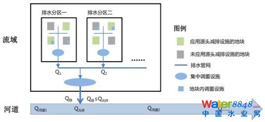 圖2 基于“地塊—排水分區(qū)—流域”的徑流峰值管控示意