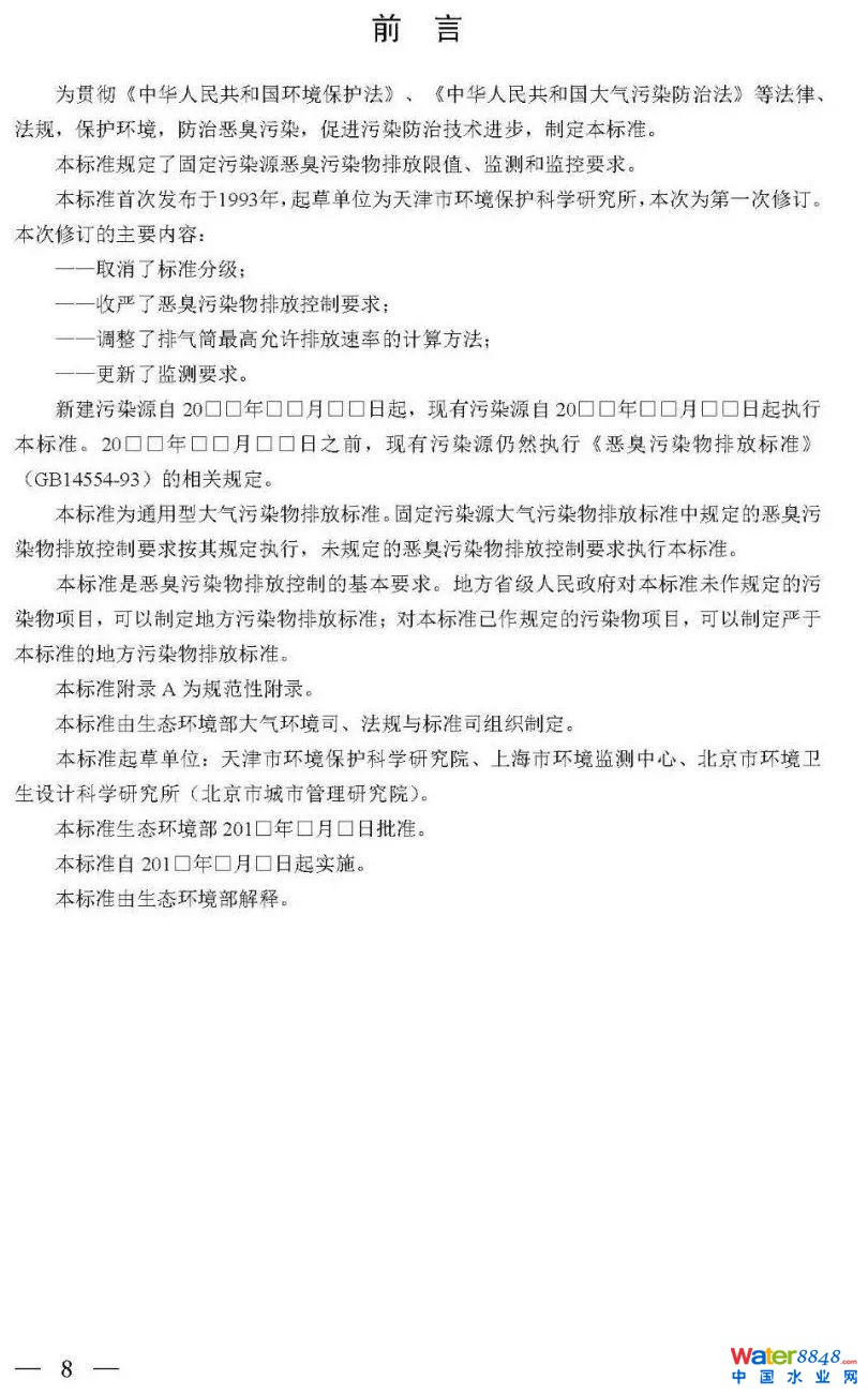 為貫徹《中華人民共和國環(huán)境保護(hù)法》和《中華人民共和國大氣污染防治法》,完善國家大氣污染物排放標(biāo)準(zhǔn),改善空氣環(huán)境質(zhì)量,我部決定修訂國家環(huán)境保護(hù)標(biāo)準(zhǔn)《惡臭污染物排放標(biāo)準(zhǔn)(GB 14554-93)》。