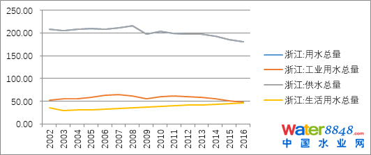 (1)以浙江為例,用水總量、工業(yè)用水量有緩慢下降趨勢(shì),生活用水量上升較快。既說明浙江省總體產(chǎn)業(yè)結(jié)構(gòu)調(diào)整的表現(xiàn),城鎮(zhèn)化建設(shè)水平提高的反映。也由此顯現(xiàn)出農(nóng)村水務(wù)市場(chǎng)的潛力。同時(shí),供排水一體化,城鄉(xiāng)供水一體化的態(tài)勢(shì)更趨明顯,市場(chǎng)體量逐步釋放。
