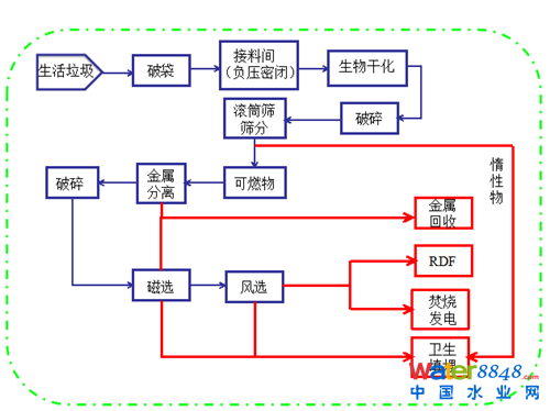 1.生活垃圾生物干化技術(shù)工藝流程圖