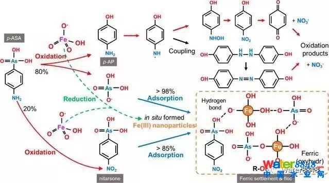 高鐵酸鹽氧化對氨基苯胂酸的反應路徑示意圖
