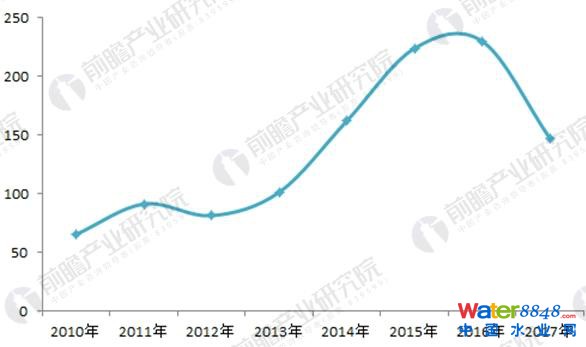 圖表5:2010-2017年中國農(nóng)村污水處理相關(guān)專利申請量變化圖(單位:件)