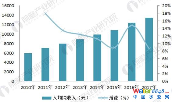 經(jīng)濟的快速發(fā)展帶來了國民收入水平的持續(xù)提升。數(shù)據(jù)顯示,2010年農(nóng)村居民人均存收入僅為5919元,至2017年已經(jīng)實現(xiàn)了翻倍,達到13432元,同比增長8.65%。2010-2017年復合增長率達12.42%。