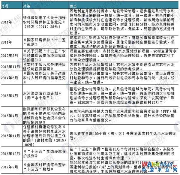 圖表3:2011-2017年中國農(nóng)村污水處理行業(yè)相關(guān)政策