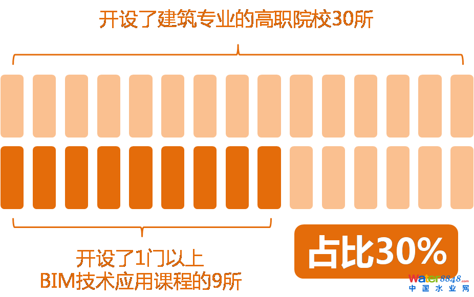 自2004年歐特克與教育部共同推進BIM教育以來,目前全國近2000所建筑類院校,開設(shè)BIM技術(shù)應(yīng)用相關(guān)課程的比例為30.5%。