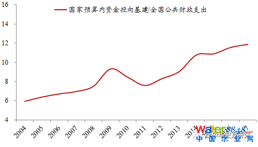 圖表:基建投資中預(yù)算內(nèi)資金占全國公共財政支出的比例(%)