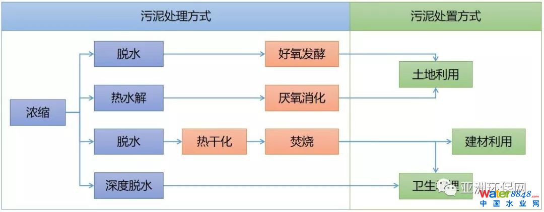 ● 土地利用為主:污泥穩(wěn)定化后以土地利用為處置方向,重金屬超標污泥以建材和焚燒為處置方向;