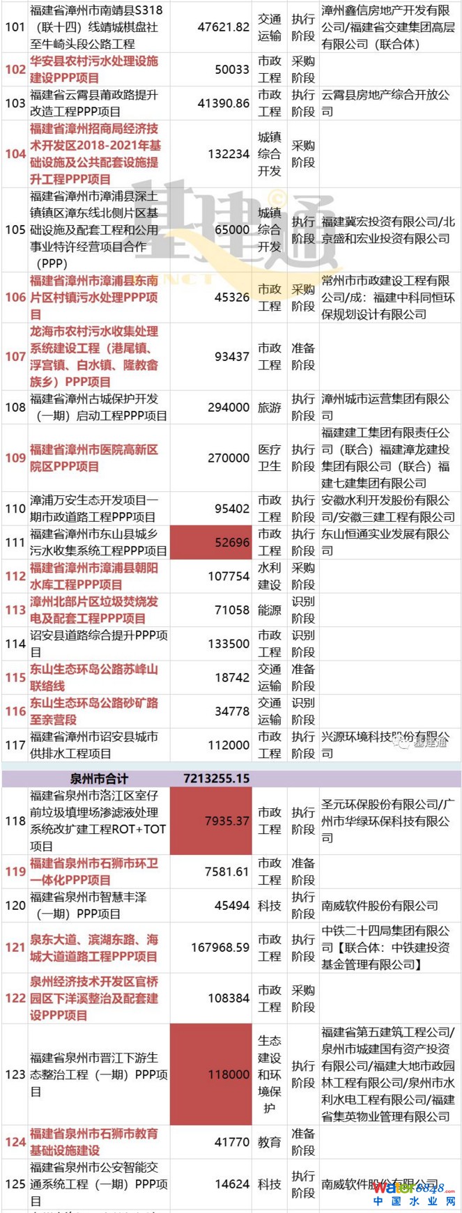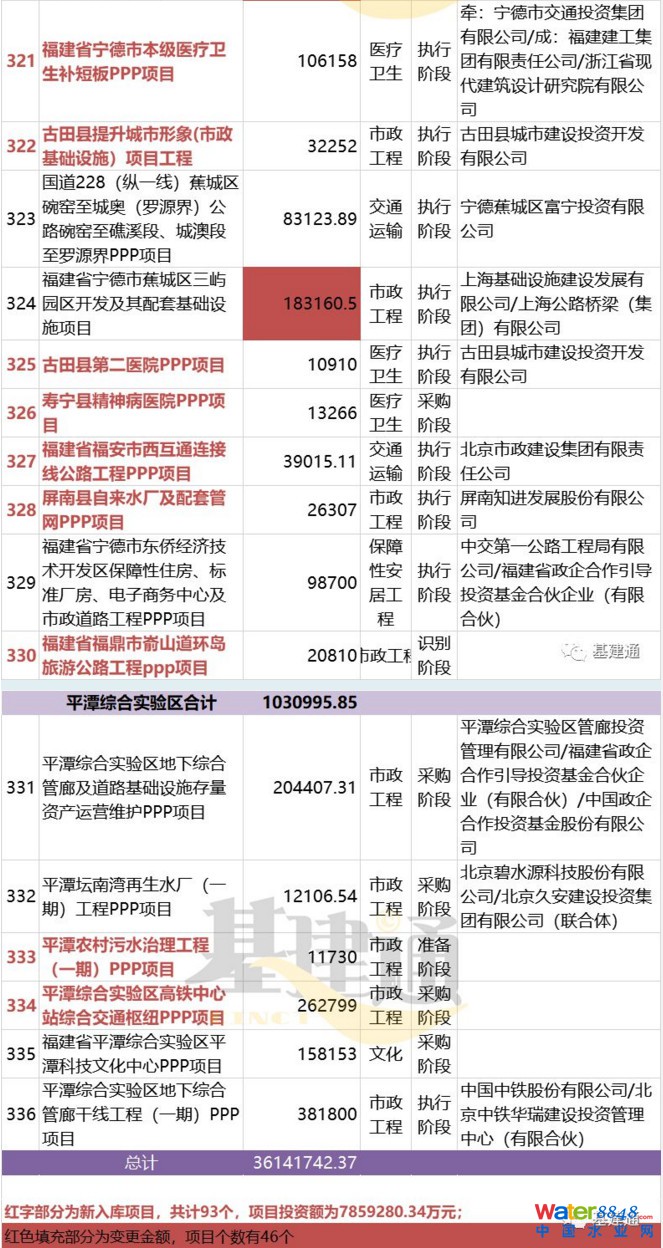 當(dāng)然,有減就有增。除了清退出庫(kù)24個(gè)項(xiàng)目,基建通還發(fā)現(xiàn),此次又新入庫(kù)了93個(gè)PPP項(xiàng)目,這些項(xiàng)目的總投資近786億元。而經(jīng)過(guò)對(duì)項(xiàng)目管理庫(kù)動(dòng)態(tài)清單的跟蹤,截止到目前,福建省PPP項(xiàng)目庫(kù)中共計(jì)項(xiàng)目336個(gè),項(xiàng)目總投資為36141742.37萬(wàn)元。另外,還有46個(gè)項(xiàng)目的投資額發(fā)生了變更,相抵消后增加差不多40億投資額。