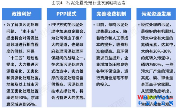 行業(yè)的盈利性為發(fā)展帶來不少動力,但政策的加碼、收費機制的完善及污泥資源的發(fā)展等會進一步對東航也擴張。為解決污泥處理問題,先在“水十條”中提出會對污泥處理領域進行相當程度的傾斜。后在環(huán)保“十三五”規(guī)劃也提出,大力推進污泥穩(wěn)定化、無害化和資源化處理處置,地級及以上城市污泥無害化處理處置率達到90%,京津冀區(qū)域達到95%。國家層面政策法規(guī)的加碼,無疑大大驅動了污泥處理處置的資源化與無害化進程,相關的處理技術與設備也得到快速發(fā)展,各大污水廠“重水輕泥”的現(xiàn)象也得到一定程度的緩解。