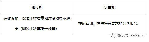 工程建設績效考核體系設置可考慮項目總投資、項目建設質(zhì)量及工期兩個方面。項目總投資績效指標中可選擇總投資節(jié)約率作為績效指標,建設質(zhì)量及工期指標則可選擇在滿足國家法律法規(guī)規(guī)定及政府方要求的工程質(zhì)量的前提下,節(jié)約的建設工期天數(shù)。實踐中,社會資本也樂于節(jié)省工期,因為由于PPP項目合同簽訂的是總年限合同,建設工期的節(jié)省了相當于就增加了項目的運營期,本身對項目公司就是一筆收益。