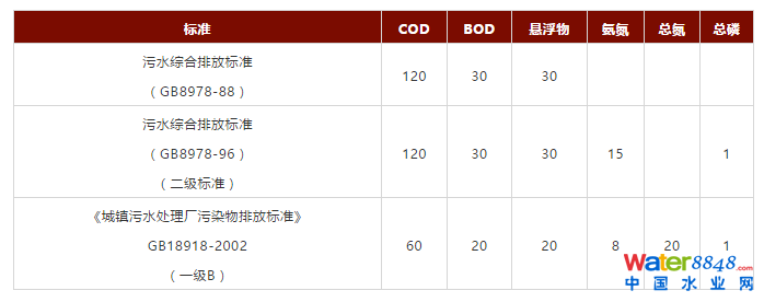 我國城鎮(zhèn)生活污水處理廠建設早期適用的是《污水綜合排放標準》,針對污水去向執(zhí)行不同級別的排放標準。第一個是GB8978-88版本,后來經(jīng)歷了一次修訂,出臺了GB8978-96版本。