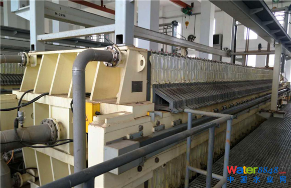 隨廠區(qū)人員來到污泥干化處置中心,這里是污泥處置的“預(yù)處理”場所,它將大大降低污泥中的水分,減少污泥體積、降低處置成本。只見一塊塊“薄餅”般的小泥塊通過螺旋桿輸送至泥倉,胡展波指著前方5組90格方形生物瀝浸池說道,“我們眼前看到的裝置是生物瀝浸、板框壓濾工藝,含水率為99.5%的污泥經(jīng)提升泵提升,經(jīng)重力濃縮后到達(dá)生物瀝浸池中,在生物瀝浸池約48小時,經(jīng)生物菌群改性處理,再經(jīng)過2個大的沉淀池固液分離后,上清液回流至污水處理廠進(jìn)行再處理,下沉污泥經(jīng)脫水機(jī)房的板框壓濾后,可以將含水率降至60%以下,它的工作流程就如同一個小型污水處理廠。”