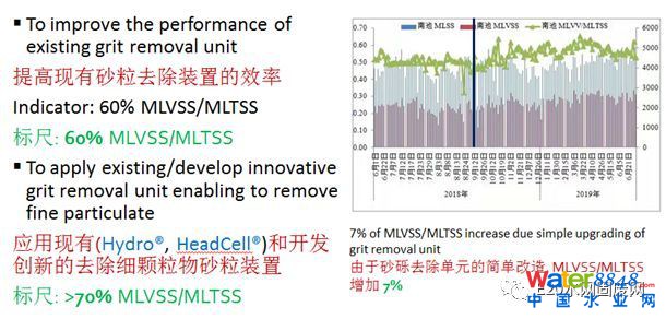 第一、高濃度無機懸浮固體。高濃度無機物懸浮固體稱之為ISS,ISS/TSS正常值是40%到20%,中國值在60%到40%。這反映出兩個問題:一是沉沙池的預(yù)處理有待改進;二是由于中國的下水道泄漏和廣泛的城市建設(shè), 污水中含高濃度的直徑 < 200μ 細無機顆粒。