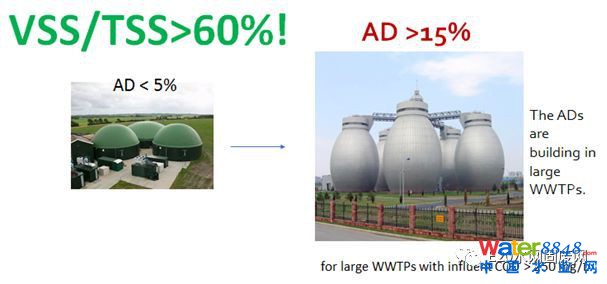 第一、能量回收。將VSS/TSS提高到等于或高于60%,有厭氧消化廠的比例增加到大于15%。